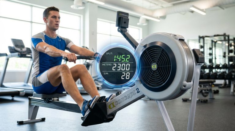 Le meilleur indicateur pour valider vos progrès est le split au 500m, qui affiche votre vitesse instantanée. Si ce chiffre diminue avec le temps tout en restant constant durant votre séance, c’est le signe que vous gagnez en puissance et en endurance. Je vous conseille aussi de surveiller votre fréquence cardiaque : si votre pouls est plus bas pour un même effort, votre cœur devient plus efficace.